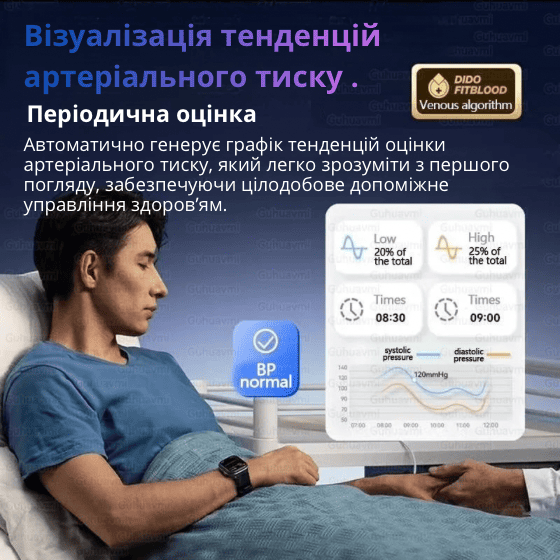 Автоматично оцінює ризики глюкози та тиску, щоб ви були на крок попереду хвороб