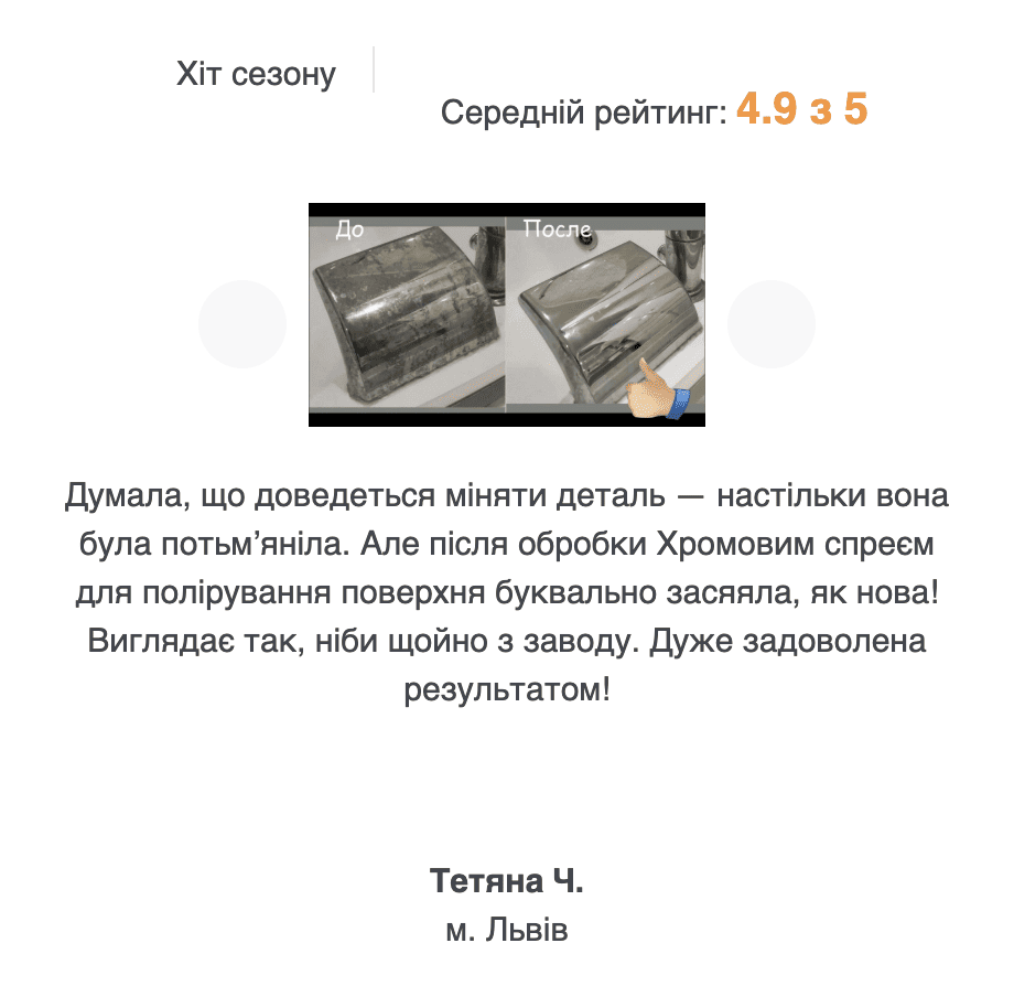 Останнє замовлення: 40 хв томуХромовий спрей для полірування